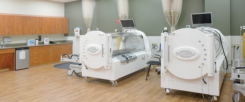 This therapy enhances the flow of oxygen, providing much-needed nutrients that can promote rapid wound healing. Studies have shown that this therapy has a success rate of between 70-90 percent in diabetic patients. A patient undergoing treatment lies in an enclosed chamber, receiving pure oxygen through increased atmospheric pressure. This allows the body to more efficiently incorporate oxygen into plasma and blood cells, helping to enhance the healing process.